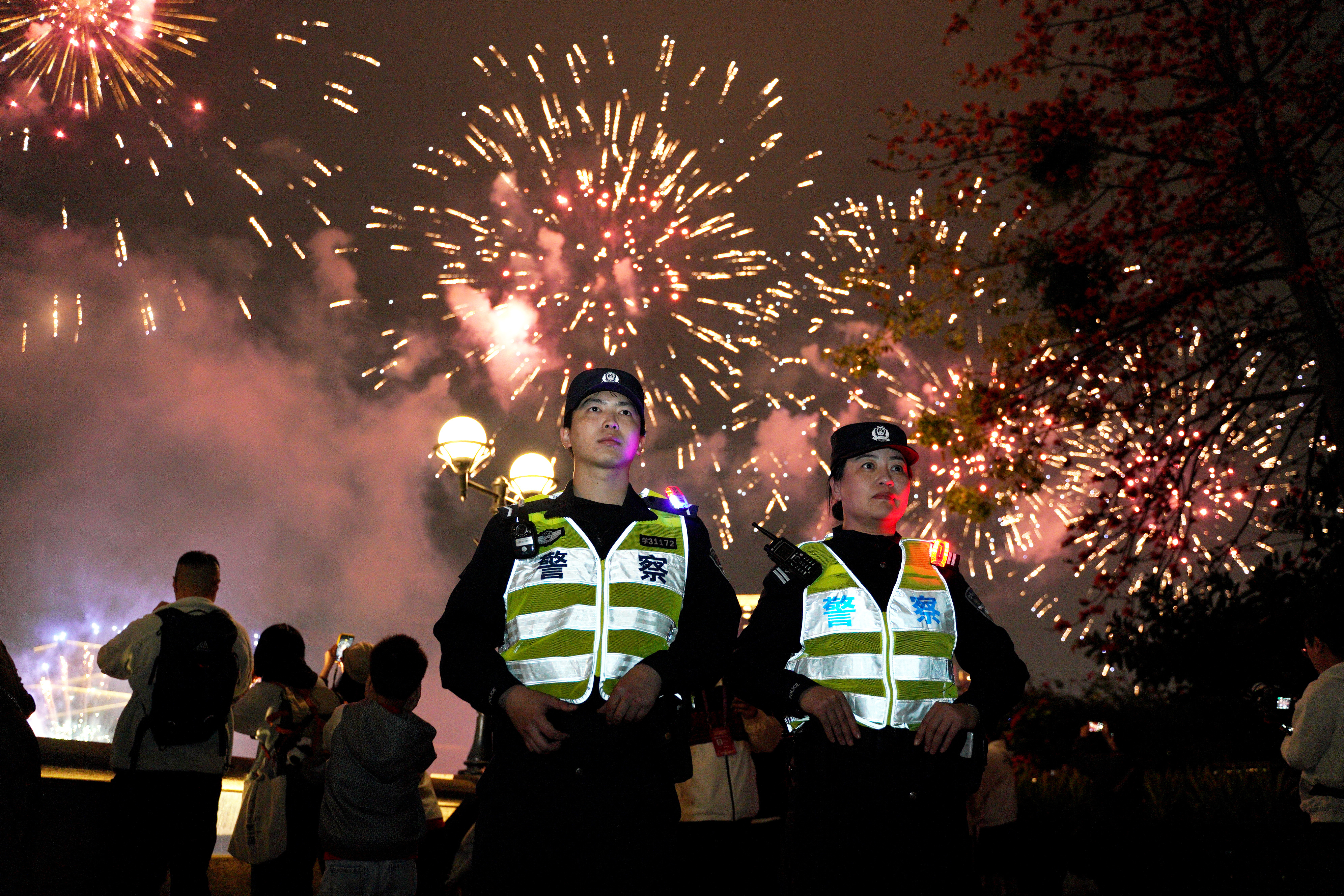 今年春节假期以来,广东省住宿业累计接待人数、口岸通关人次、高速公路总车流量、举办大型活动场次和参与群众人次均同比明显上升,全省公安民警坚守岗位、连续奋战,以最高标准、最严要求、最实措施构筑起春节安全防线。节前,省公安厅研究制定烟花爆竹“五严查”“八严禁”及配套细化措施,对烟花爆竹运输车辆“一车一方案”全过程监管。节日期间设立前后方指挥部,全程守护广州白鹅潭春节烟花汇演、汕头迎新春大型焰火晚会等63场焰火燃放活动,确保安全顺利举办。