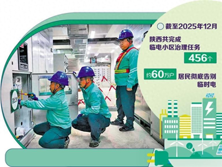 截至2025年12月,陕西共完成456个临电小区治理任务,约60万户居民彻底告别临时电,用上了放心电、舒心电、可靠电。(经济日报记者 杨开新)